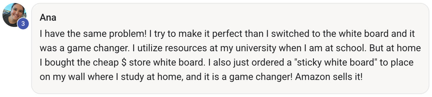 A private space where you can connect with other students on the same journey. Share wins, troubleshoot challenges, and swap study strategies with a supportive group that understands exactly what you’re working through.
